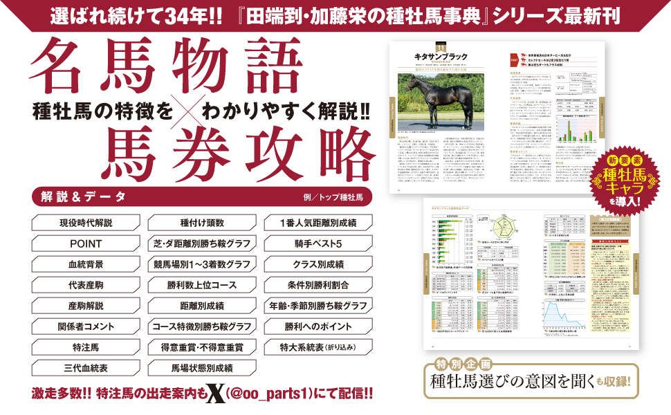 トップ種牡馬から2025年に産駒デビューを迎えた新種牡馬、そして海外のマイナー種牡馬まで約380頭の種牡馬を取り上げて詳細に解説。特に予想で目にすることの多い種牡馬は、各種牡馬の最適コース、得意&不得意重賞リスト、著者特薦の現役特注馬の解説など、馬券に役立つ情報でレース検討をサポートします。
